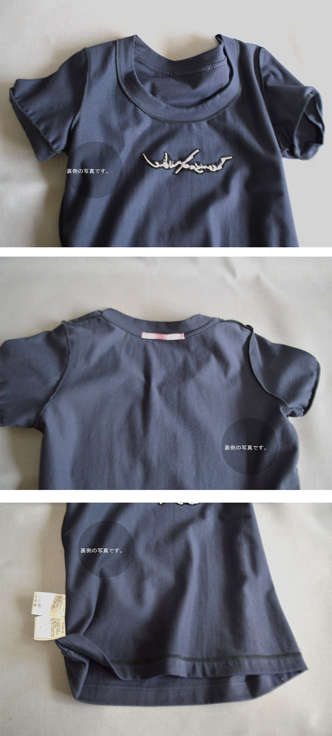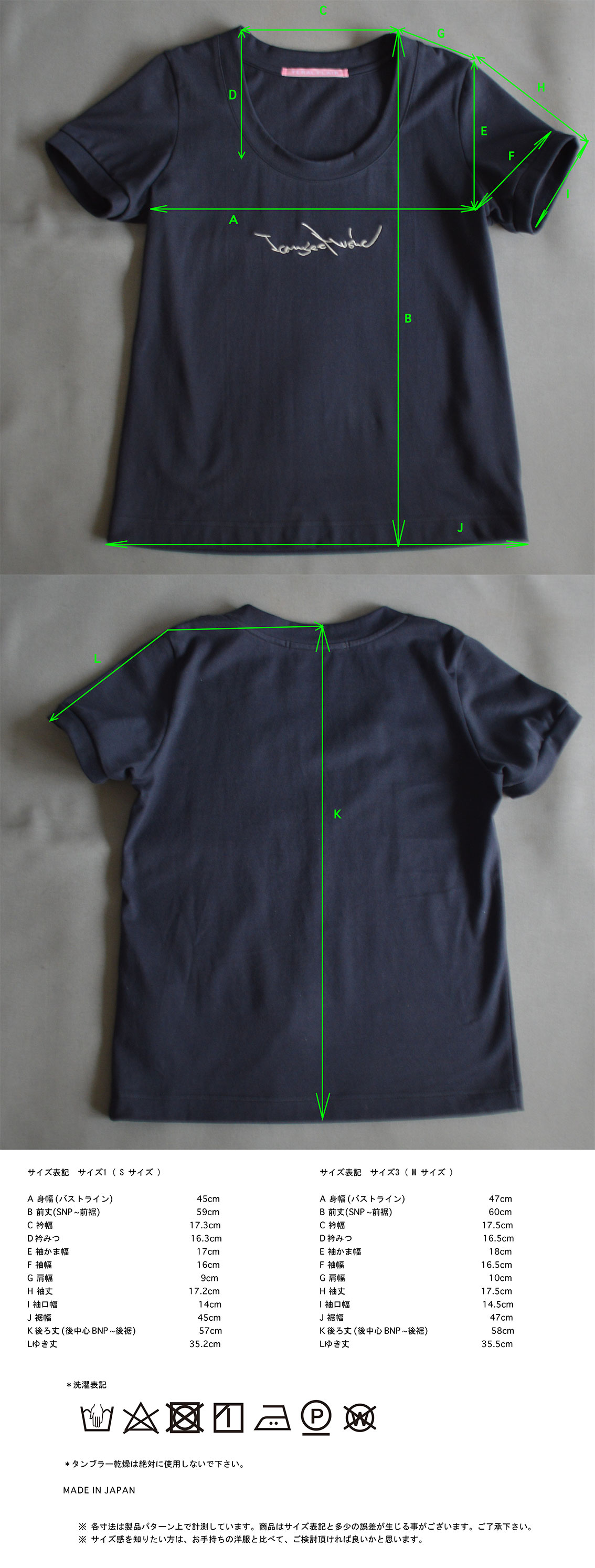 後ろ襟ぐり、肩に伸び止め始末。襟ぐり、袖口、フライス仕立て。裾は二本針仕立て。勿論、メイド イン ジャパン です。